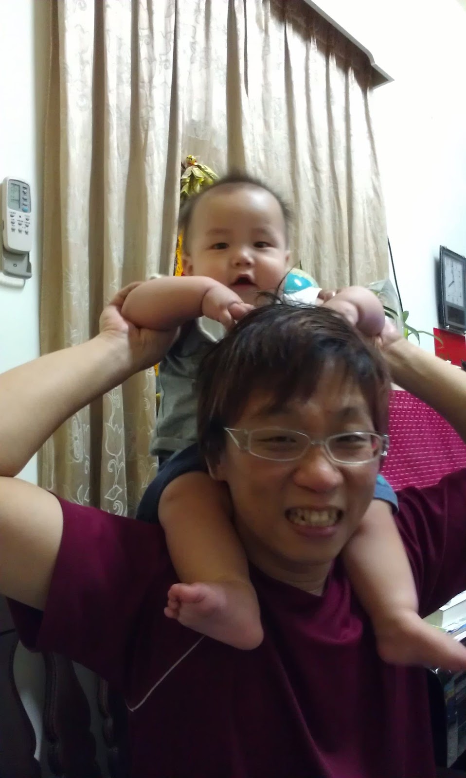 小昱的口腔期有夠長的,連放在爸爸頭上,都想吃爸爸的頭髮